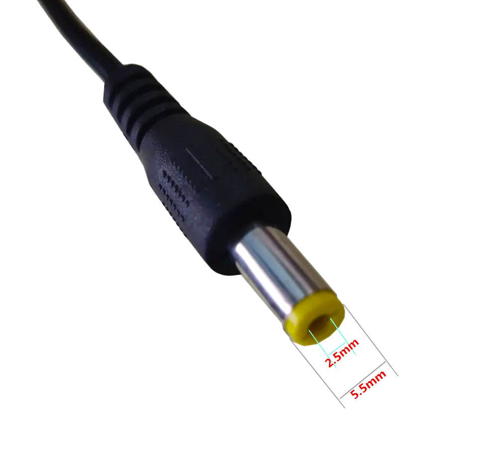 • Конектор: DC 2.5×5.5 мм (вътр. Ø 2.5 мм / външ. Ø 5.5 мм)
